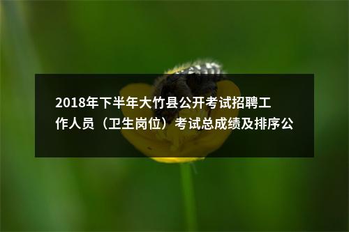 根据中共大竹县委组织部、大竹县人力资源和社会保障局《关于2018年下半年大竹县部分事业单位公开考试招聘工作人员公告》规定,现将2018年下半年大竹县部分事业单位公开考试招聘工作人员(卫生岗位)考试总成绩及排序予以公示(见附件)。
