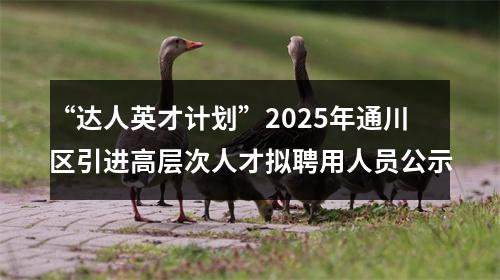 - “达人英才计划”2025年通川区引进高层次人才拟聘用人员公示